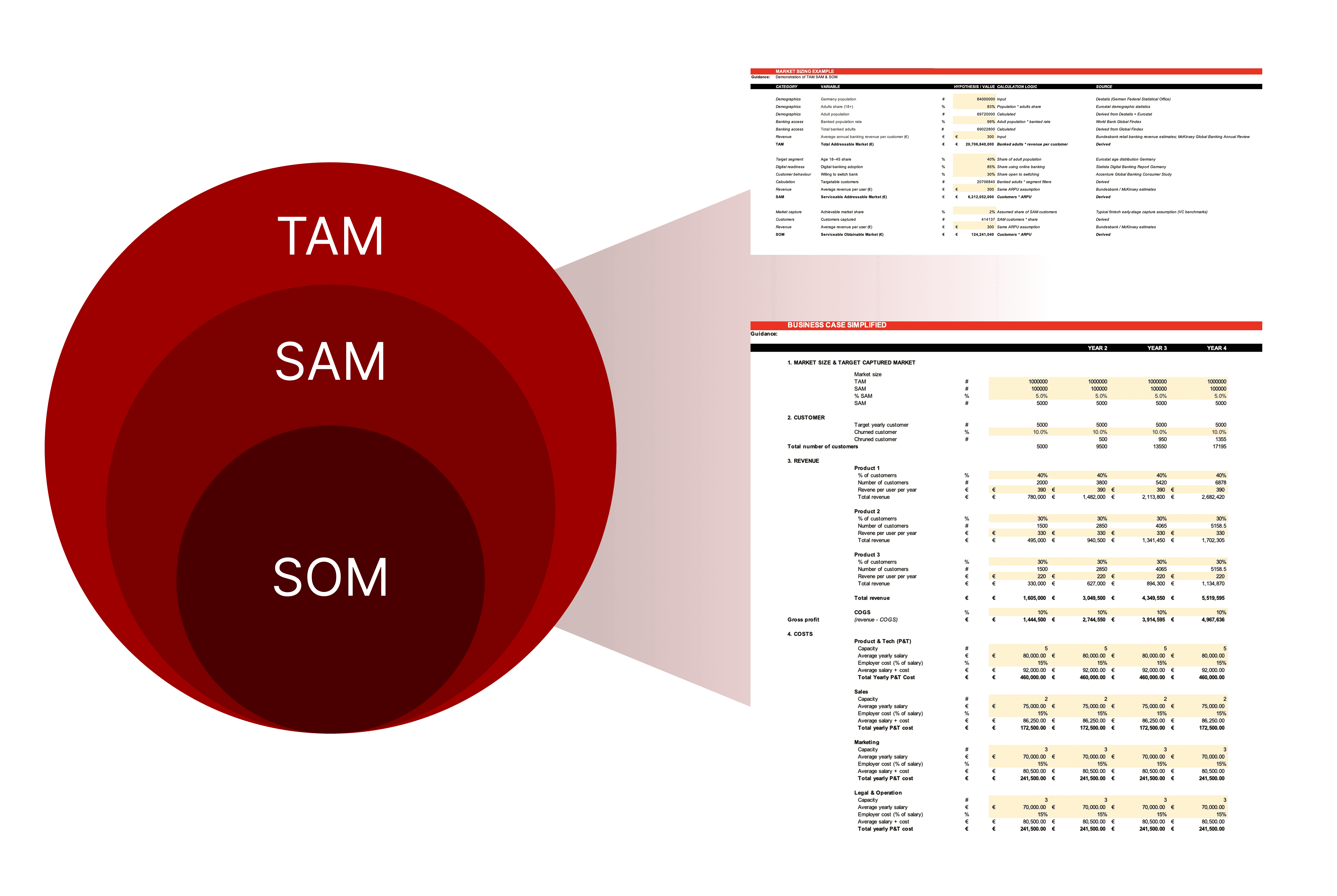 The TAM/SAM/SOM calculator walks you through market sizing step by step.